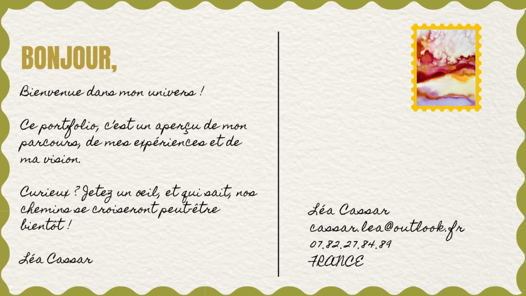 Mon enthousiasme et mon énergie me poussent à m’investir pleinement dans ce que je fais, avec sérieux mais toujours dans la bonne humeur 🙂