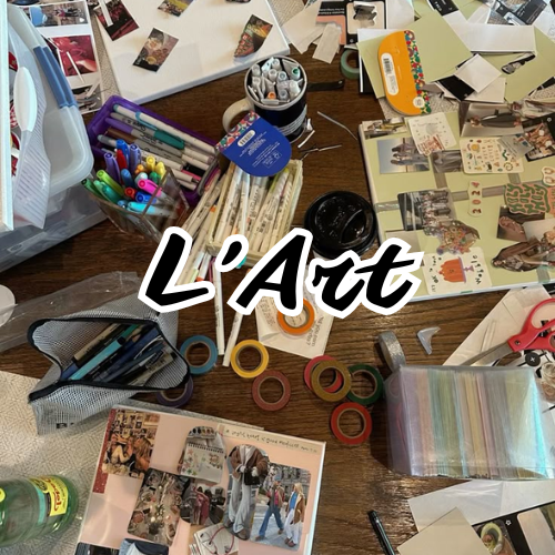 Je tiens des carnets dans lesquels je dessine, écris, découpe, colle… C’est un moyen pour moi d’exprimer ma créativité au quotidien. Chaque page est une sorte de collage de mes idées, de mes envies et de ce qui m’inspire. J’aime mélanger différents éléments pour créer quelque chose de personnel, que ce soit un dessin, une citation ou une photo.